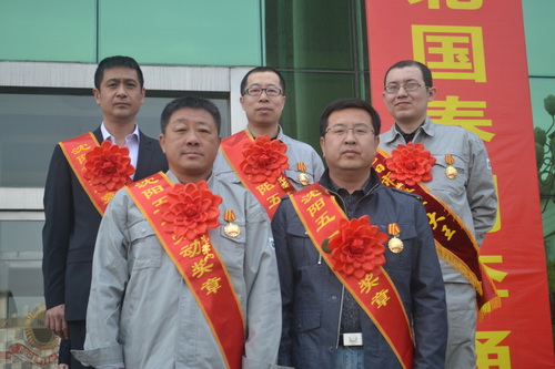 To celebrate International Labor May Day in Shenyang, a promotion meeting on “being a good main force, fighting for the 12th five-year, realizing new span” was held this morning. At this meeting, five employees from Shenyang Chemical Group----- Wang Mingwei, Lichao, Wuning, Baoxudong ,Liu Xiaohui were awarded “Shenyang May Day Labor Medal”. Wang Mingwei, chief of CPP Plant, as operation team representative of world first unit 500’000 tons/year CPP, has just been given an honor of “2013 Liaoning May Day Labor Medal”.